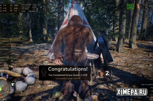 По мере развития персонажа Бигфут сможет улучшать свои навыки, зарабатывать очки за выполнение различных действий — например, за ломку веток или отпугивание животных. Кроме того, в игре предусмотрена возможность найти пару, что добавляет дополнительную цель и делает выживание более осмысленным.