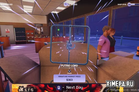 Игровой процесс строится вокруг управления магазином и всё время держится на приятном ощущении порядка. Вы покупаете новые товары, следите за ценами, расставляете коробки, обслуживаете посетителей и наблюдаете, как они пользуются игровыми столами и станциями для покраски миниатюр. Особенно увлекает коллекционная система: открывание коробок, поиск редких деталей и создание собственной витрины миниатюр создают азарт, напоминающий реальные хоббийные увлечения. Возможность собрать отряд и сыграть партию с клиентами добавляет неожиданное разнообразие, хоть обучение и выглядит довольно поверхностным.