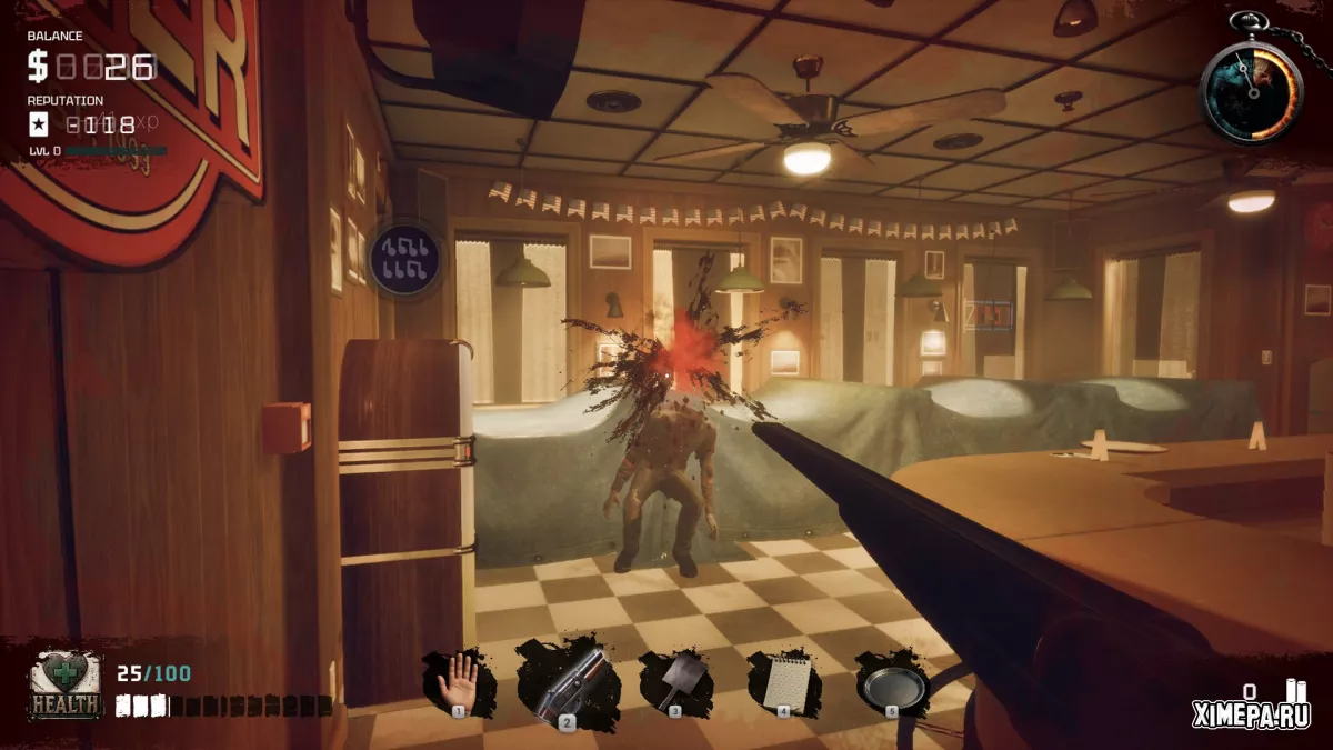 Когда шкала голода опускается до нуля, мёртвые забывают о манерах и вспоминают о вашем мозге. Тогда закусочный превращается в поле боя, где приходится отбиваться дробовиком и отстаивать право дожить до рассвета. Заработанные деньги идут на улучшение кухни, покупку оборудования и боеприпасов, ведь в Zombie Diner выживает тот, кто одинаково хорошо готовит и стреляет.