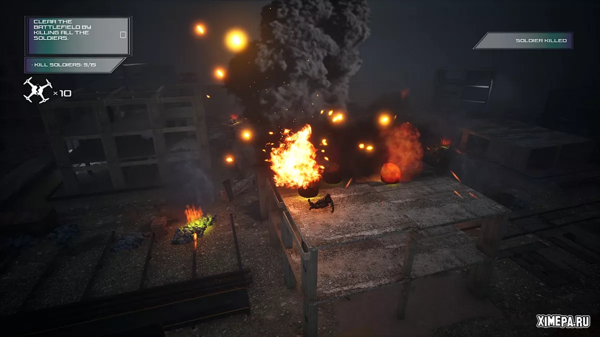 Игра не ограничивается одним подходом к бою. Здесь важно не только умение летать, но и выбор правильного инструмента для задачи. Разные модели дронов ощущаются по-разному, отличаются динамикой, инерцией и разрушительной силой боевой части, а возможность улучшать и настраивать технику позволяет выработать собственный стиль — от молниеносных, рискованных атак до тяжёлых, методичных ударов с максимальным эффектом.