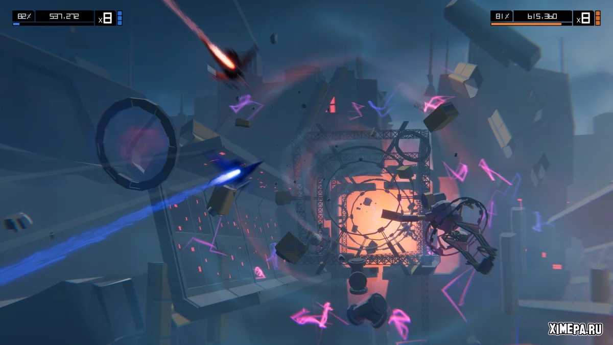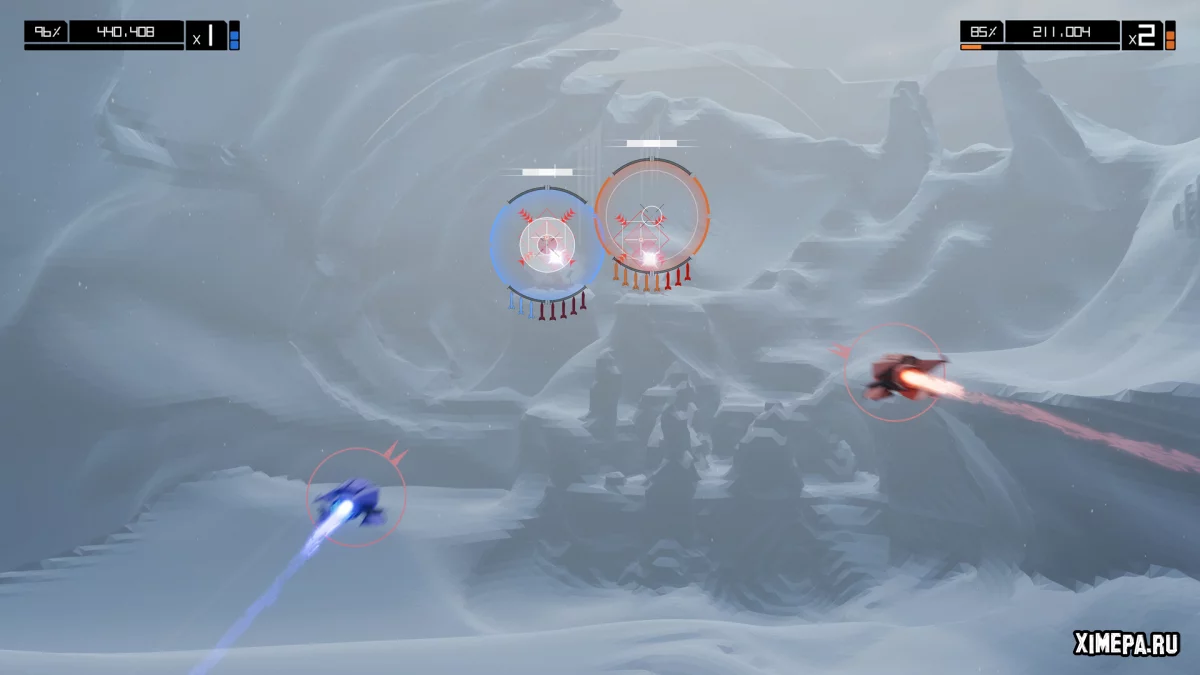 Геймплей строится на сочетании плавного управления и ритмической стрельбы. Следование неоновым линиям быстро становится интуитивным, а уничтожение врагов в такт музыке поддерживает комбо и требует концентрации. Бои с боссами добавляют зрелищности и разнообразия, а соревновательные и совместные режимы расширяют возможности взаимодействия, делая прохождение не только личным испытанием, но и поводом для соперничества.