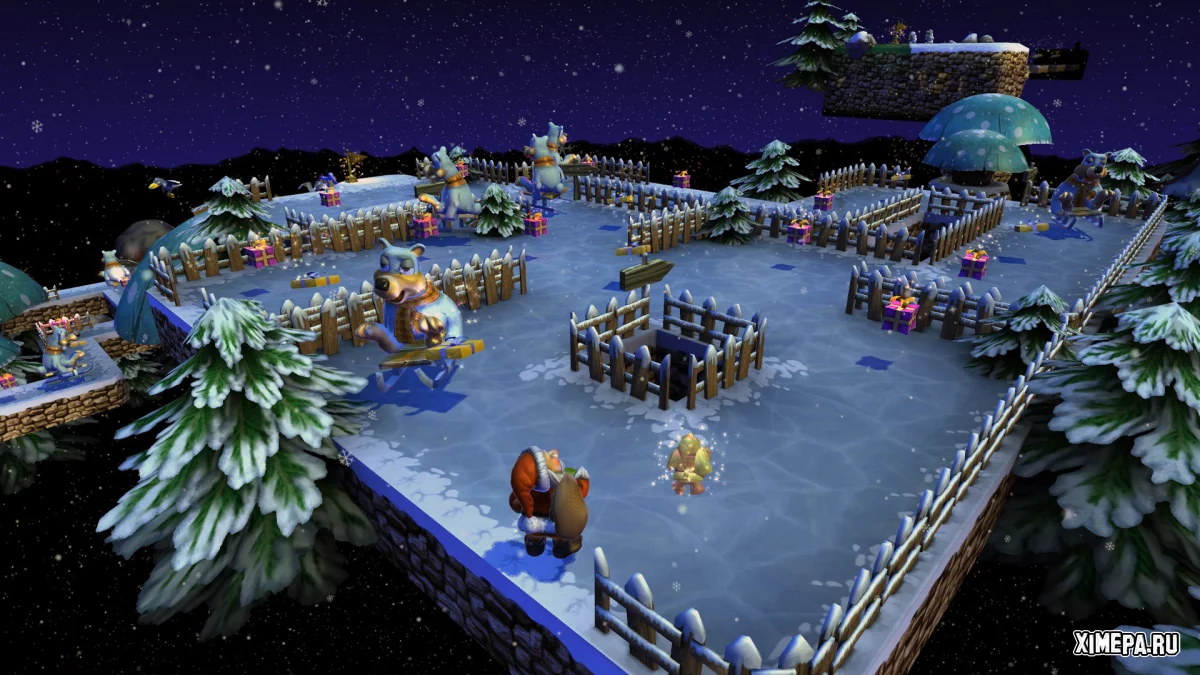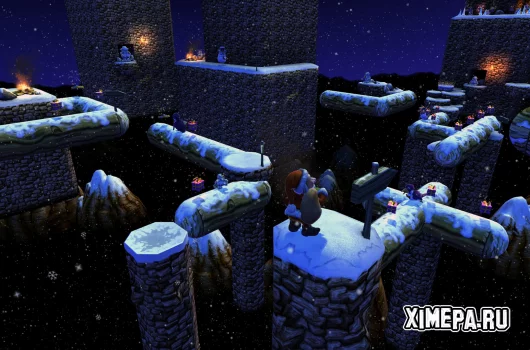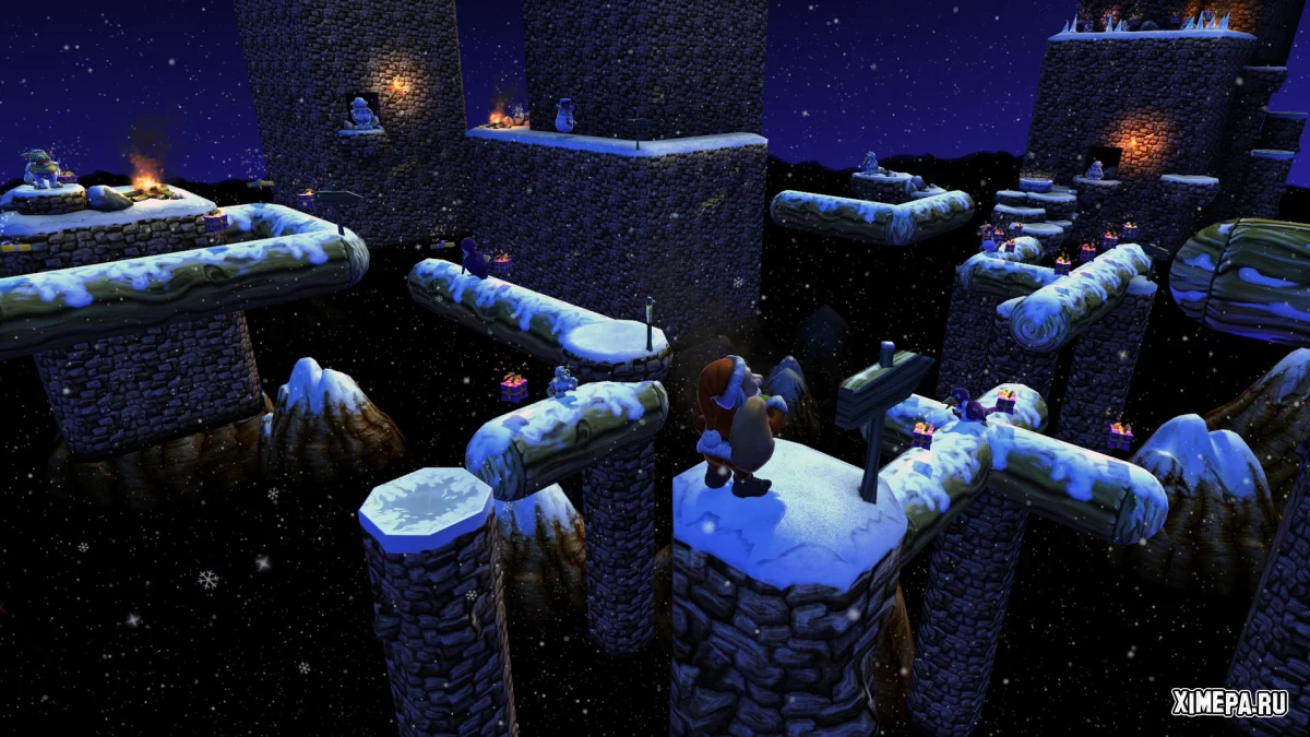 Путь Санты полон опасностей. Разноцветные свёртки разбросаны по самым неожиданным местам, а между ними — пропасти, ловушки и враги, готовые сорвать миссию. Здесь мало быть быстрым, нужно быть внимательным и расчётливым: физика мира постоянно бросает вызов, заставляя использовать гигантские качели, горки, лифты и трамплины, лавировать между маятниками и уворачиваться от тяжёлых молотов. Каждый уровень ощущается как отдельное приключение, выстроенное с любовью к деталям и постепенно раскрывающееся через пять насыщенных глав.