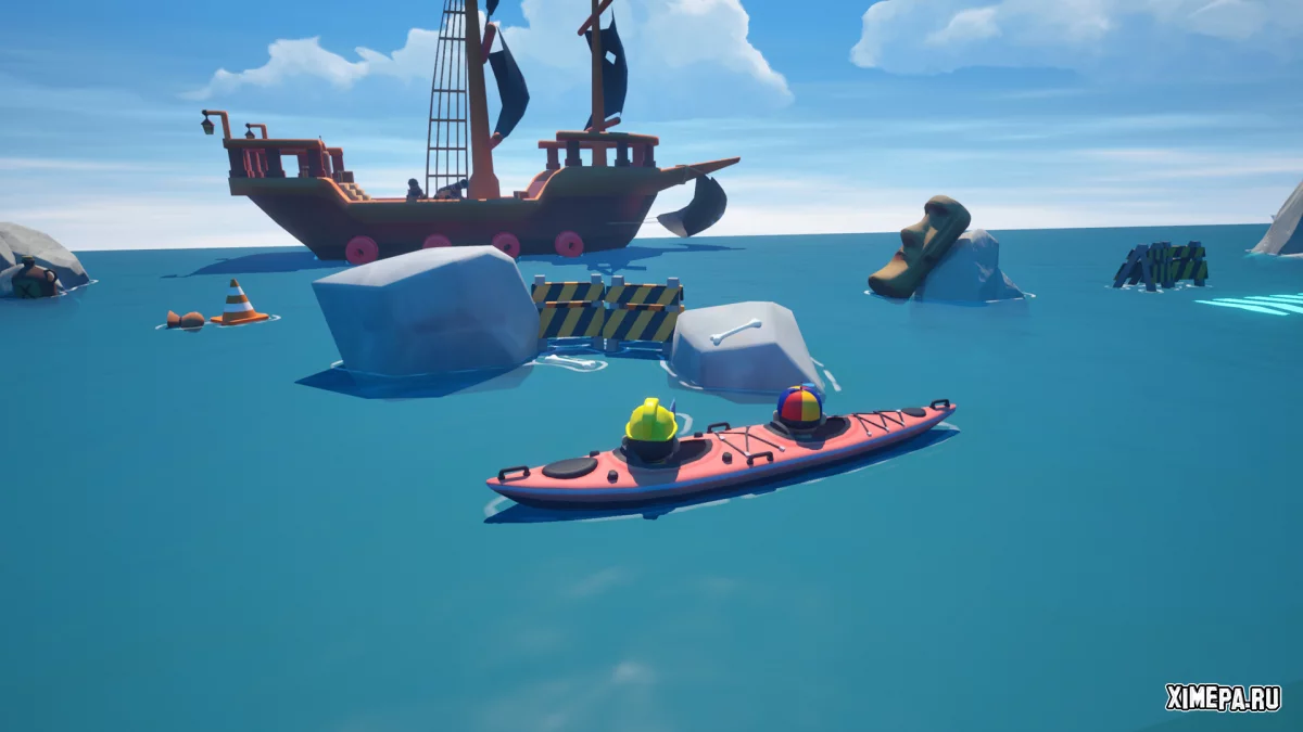 Выбор транспорта напрямую влияет на то, как будет разворачиваться ваше приключение. Лёгкие каяки подойдут для одиночек, более крупные лодки требуют командной работы и настоящей координации. Чем больше судно, тем сложнее им управлять, и именно здесь игра раскрывается как весёлый и хаотичный кооператив, где успех зависит от друзей рядом. При этом и тем, кто предпочитает одиночное плавание, найдётся комфортный и продуманный вариант.