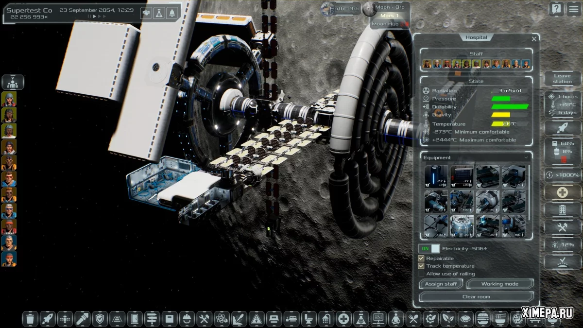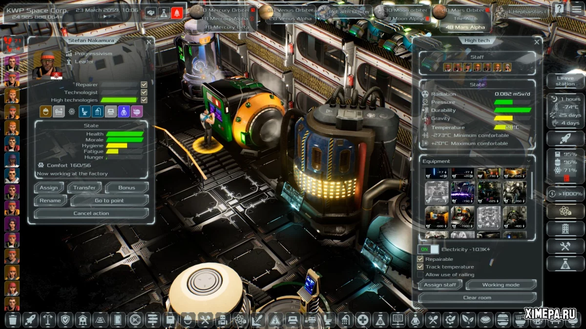 Управление персоналом также играет важную роль. Колонисты и специалисты имеют навыки, опыт и индивидуальные характеристики, которые влияют на эффективность работы и шансы выжить в экстремальных условиях. Космос постоянно создаёт угрозы: радиация, солнечные вспышки, перегрев или переохлаждение станций, нехватка воздуха и энергии. Ошибки в планировании могут привести к цепочке катастроф, поэтому игра поощряет вдумчивый, медленный подход. В итоге Solargene предлагает не столько развлечение в привычном смысле, сколько глубокую научно ориентированную песочницу, где каждый успех даётся через расчёты, терпение и понимание того, как на самом деле работает освоение космоса.