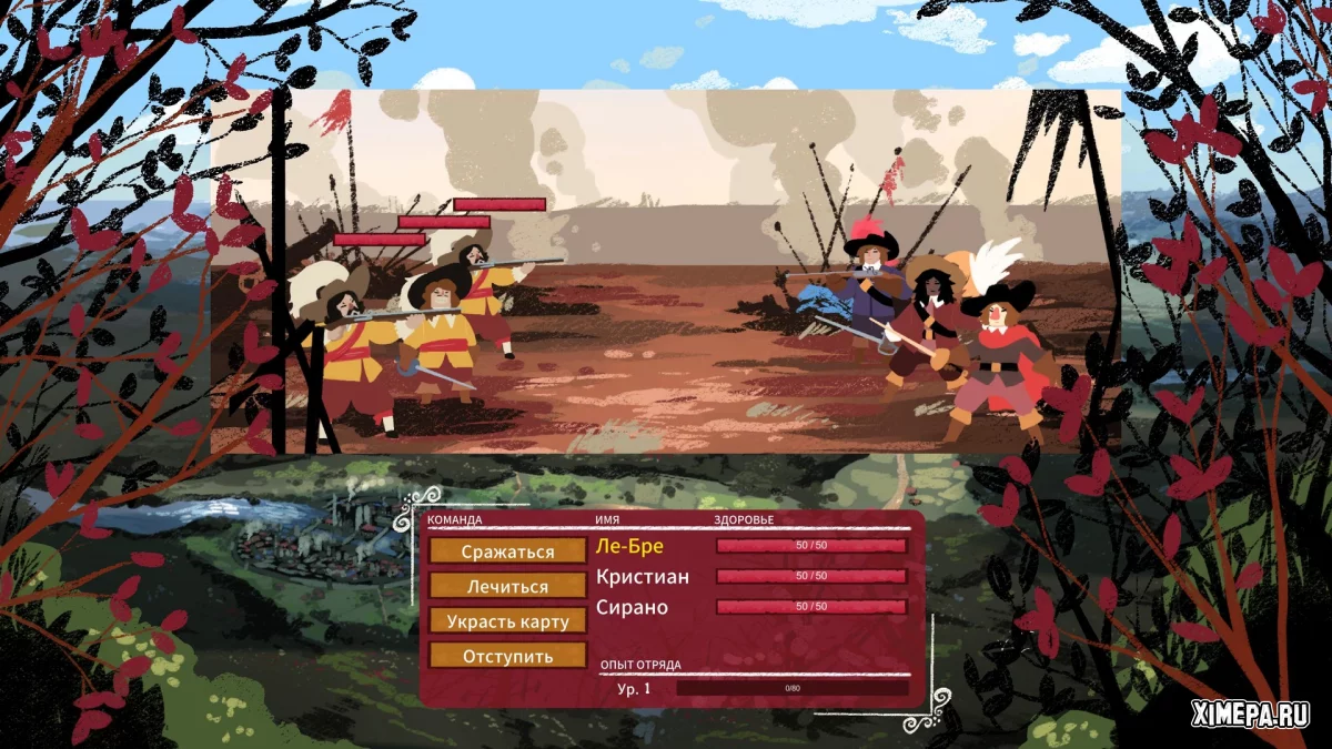 Когда Сирано влюбляется в Роксану, его уверенность тает: как поверить, что она сможет полюбить человека с такой внешностью? Ситуация усложняется, когда сердце Роксаны покоряет красивый гвардеец. Тогда Сирано находит единственный возможный выход — открыть свои чувства, скрывая собственное лицо и оставаясь в тени. История разворачивается в череде пошаговых поединков, где вы командуете отрядом верных друзей, путешествуете из Парижа в Аррас и сражаетесь за дружбу, честь и любовь. Между боями вы сочиняете любовные письма, собираете карты-подсказки для вдохновения и шаг за шагом формируете образ героя, который одновременно поэт, влюблённый, друг и дуэлянт.