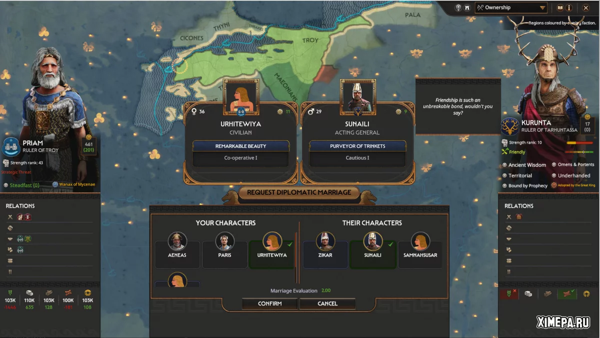 Геймплей сочетает пошаговое управление империей с тактическими сражениями в реальном времени. На стратегической карте вы управляете ресурсами, расширяете территории, ведёте переговоры, заключаете союзы и ведёте войны. Особое внимание уделено механике династий, где поколения правителей, браки, наследование и политические интриги влияют на стабильность государства и ход кампании, делая каждую игру уникальной.
