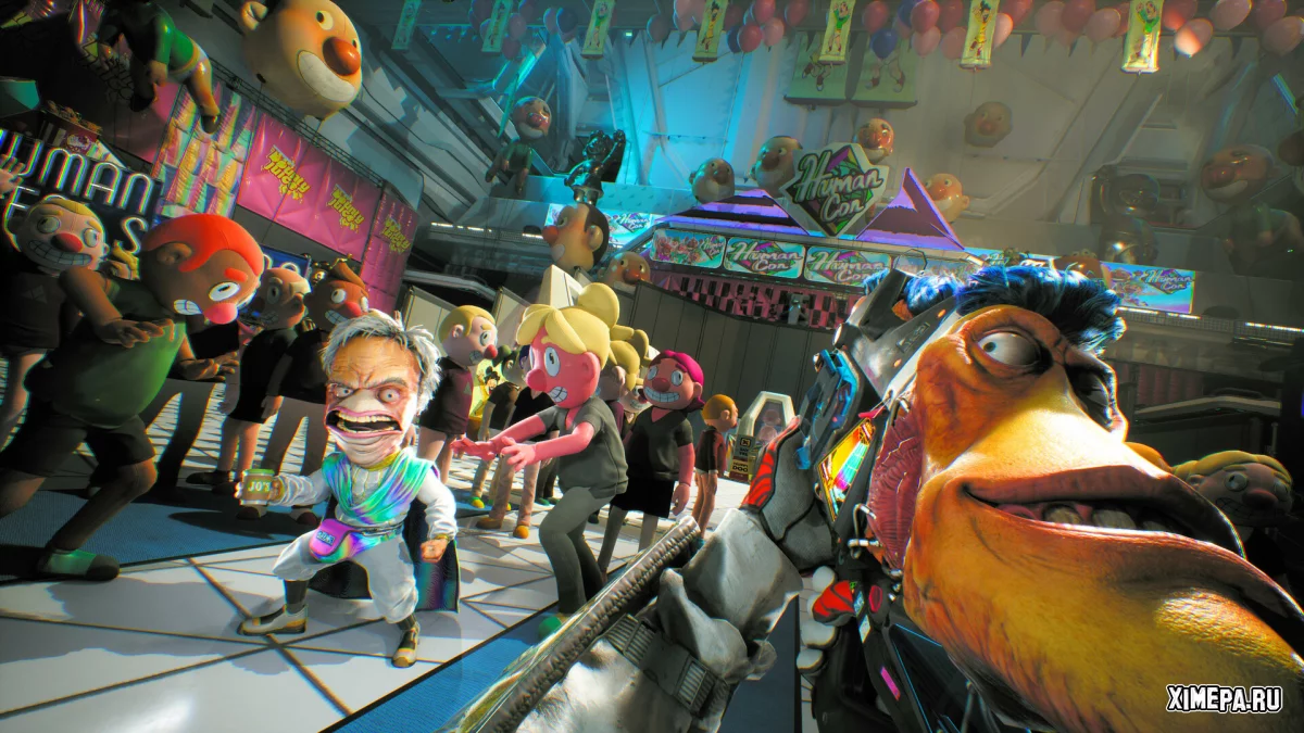 Сюжет High On Life 2 продолжает историю почти без паузы после первой части: герой и его грубоватые инопланетные союзники оказываются вне закона и вынуждены действовать подпольно. На этот раз главными врагами становится могущественная фармацевтическая корпорация, и игрок берёт на себя роль нелегального убийцы, поочерёдно устраняющего её ключевых фигур. Кампания строится вокруг серии миссий по охоте на боссов, связанных между собой общей линией борьбы с организацией. При этом сама история подаётся менее изящно, чем раньше: персонажи часто объясняют мотивы и устройство мира длинными монологами, а сюжетные повороты не всегда производят должное впечатление. Несмотря на это, темп остаётся быстрым, а между заданиями постоянно появляются абсурдные сценки и комедийные эпизоды, благодаря которым повествование не застаивается.