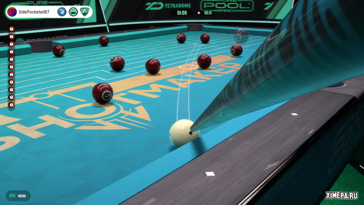 Помимо одиночного режима, игра предлагает локальный и онлайн-мультиплеер, где приятно соревноваться с друзьями или случайными соперниками, хотя системе подбора не хватает гибких лобби и серий матчей. Главный недостаток связан с камерой: во время удара она фиксируется слишком близко к битку и не даёт изменить ракурс, из-за чего иногда трудно оценить линию или даже увидеть целевой шар. Тем не менее эти шероховатости не мешают главному — игра выглядит и ощущается великолепно, поэтому для поклонников бильярда это один из лучших виртуальных вариантов на сегодня.