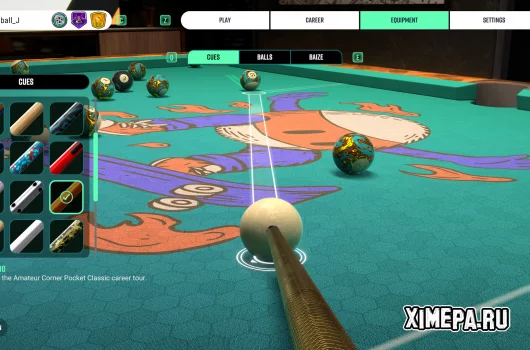 Физика и управление реализованы очень убедительно: прицеливание, выбор угла и вращения шара ощущаются точными и естественными, а сила удара задаётся движением стика, к которому быстро привыкаешь. Система сложности делает игру доступной для всех: на лёгких уровнях показываются траектории шаров, а на высоких подсказки исчезают, позволяя играть «по-настоящему». В одиночной карьере есть как классические матчи, так и разнообразные испытания с особыми условиями, что создаёт ощущение прогресса и добавляет реиграбельности благодаря наградам и косметическим разблокировкам.