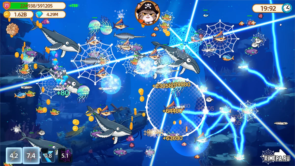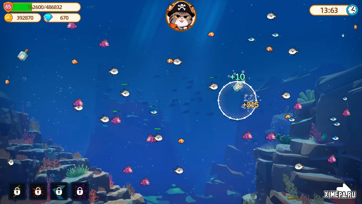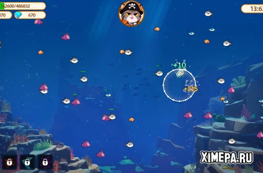 Представьте себе игру, в которой рыбалка превращается в медитативное приключение, доступное в любое время и даже одной рукой. За считанные минуты вы погружаетесь в мир, где курсор превращается в удочку, а косяки рыб сами плывут вам навстречу. Вместе с отважными Капитан-Кóтами вы путешествуете по водам всего мира, возвращаясь с богатым уловом и восторженным «Еще один заход!». Каждое плавание открывает новые виды морской жизни — двадцать уникальных рыб и других обитателей глубин, каждый из которых автоматически превращается в Золото и Алмазы. Эти ресурсы становятся инструментом совершенствования ваших талантов, сил и навыков, превращая обычного рыболова в настоящего мастера морских приключений.