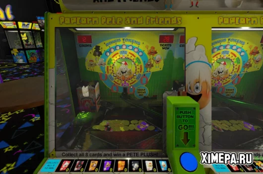 В игре очень много контента: огромная карта, парк развлечений, торговый центр, боулинг, картинг, мини-гольф, лазертаг, аквапарк и десятки аркадных автоматов с физикой, основанной на реальных билетных автоматах, где нужно ловить предметы, толкать монетки, попадать шариками и так далее. Есть несколько режимов, и каждый из них меняет ощущение от игры. В свободном режиме можно просто изучать автоматы и учиться в них играть без ограничений по деньгам, а режим дня рождения даёт доступ ко всей карте и куче денег, превращая игру в песочницу для исследования и развлечения.
