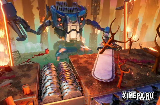 Super Meat Boy 3D — это попытка перенести формулу классического хардкорного платформера в трёхмерное пространство, и во многом игра остаётся верной оригиналу. Сюжет здесь служит скорее поводом для действия: Мит Бой снова гонится за Доктором Фетусом, чтобы спасти Bandage Girl. История подаётся через короткие кат-сцены, а основной акцент сделан на прохождении уровней. Мир стал гораздо более живым и детализированным: на фоне происходят разные события, бегают животные, работают роботы, окружающая среда выглядит ярко и насыщенно, и это создаёт ощущение полноценного трёхмерного мира, а не просто набора платформ.