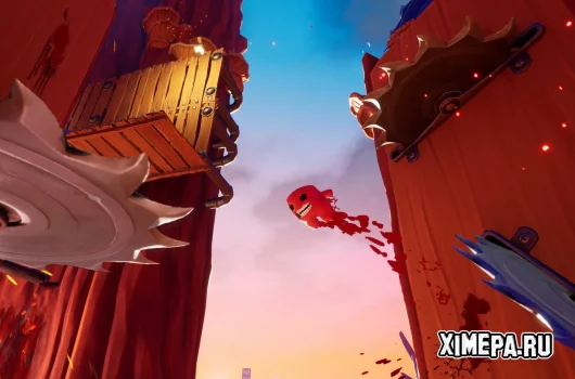 Геймплей при этом почти полностью повторяет идею оригинала: вы управляете кубиком мяса и должны добраться до конца уровня, избегая ловушек — пил, лазеров, мин и других смертельно опасных препятствий. Управление ощущается очень точным и «плотным», как и в оригинальной игре: персонаж может бегать по стенам, отталкиваться от них, скользить и очень точно прыгать. В 3D это перенесено почти без потерь, и именно это — главная причина, почему в игру вообще интересно играть. Появилась и новая способность — рывок в прыжке, который позволяет пролетать большие расстояния и набирать скорость; он особенно важен для прохождения уровней на время и поиска секретов, потому что теперь нужно не просто выживать, а искать короткие пути и оптимальные маршруты.