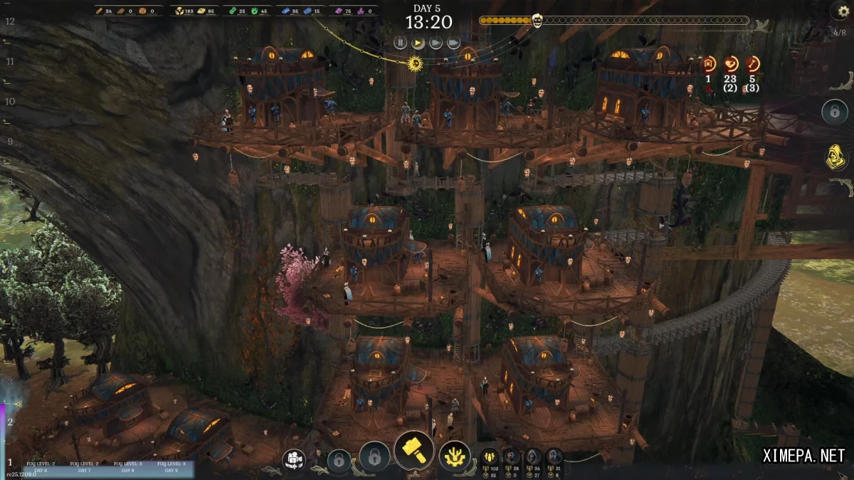 В условиях постоянной угрозы вам придется не только расширять и развивать поселение, но и заботиться о каждом аспекте его существования. Добыча ресурсов, переработка сырья, строительство укреплений, контроль за настроением жителей и рациональное распределение пространства на ветвях становятся ключом к выживанию. Ограниченность территории превращает развитие города в сложную инженерную задачу, где лестницы, мосты и зиплайны связывают воедино растущий древесный мегаполис.