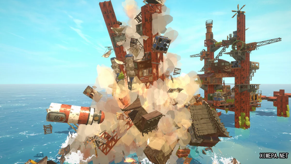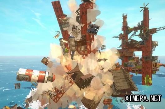 Одной из ключевых особенностей игры является физика построек. Любое здание должно иметь опору, иначе оно может обрушиться. Это добавляет элемент головоломки: приходится продумывать, как именно строить базу, где ставить опоры и как далеко можно расширяться. Иногда можно рискнуть и построить временную конструкцию без достаточной поддержки, чтобы быстро добыть ресурсы, но есть шанс, что всё рухнет. Дополнительную сложность создаёт изменение уровня воды: то, что держалось на воде, может разрушиться при отливе, но при этом открываются новые места для строительства.