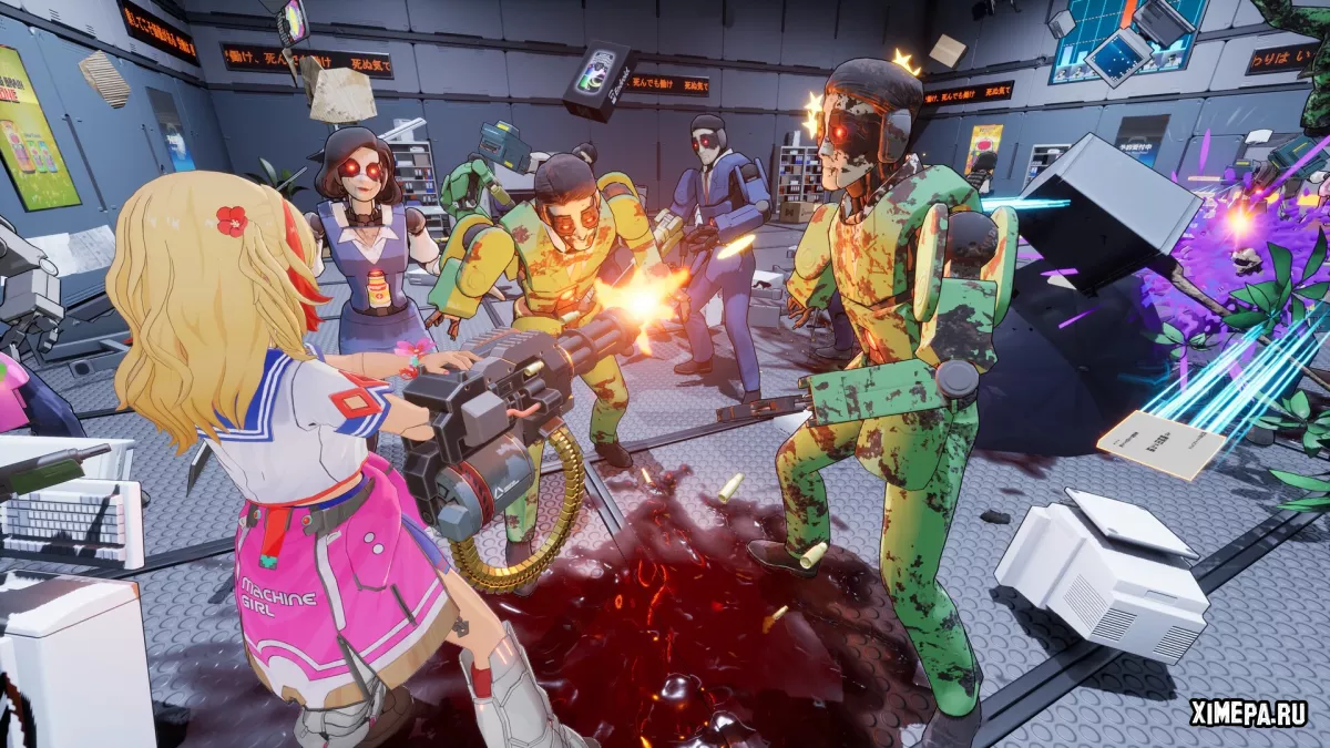 Игра Full Metal Schoolgirl пытается быть ярким и сумасшедшим сочетанием аниме-стиля и сатиры на офисную культуру, где мир полностью управляется корпоративными структурами, а рабочая сила заменена почти полностью киборгами. Две главные героини, «Машинные Девушки», решают положить конец злоупотреблениям и подняться на 100-этажный небоскрёб, чтобы свергнуть руководство корпорации и встретиться лицом к лицу с её злобным CEO. В визуальном и аудиальном плане игра поражает: безумная тема, локализация, юмор и озвучка создают невероятно комичный мир, где даже жалобы врагов звучат как карикатура на офисные страдания.