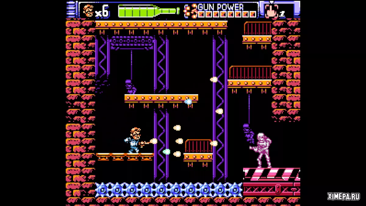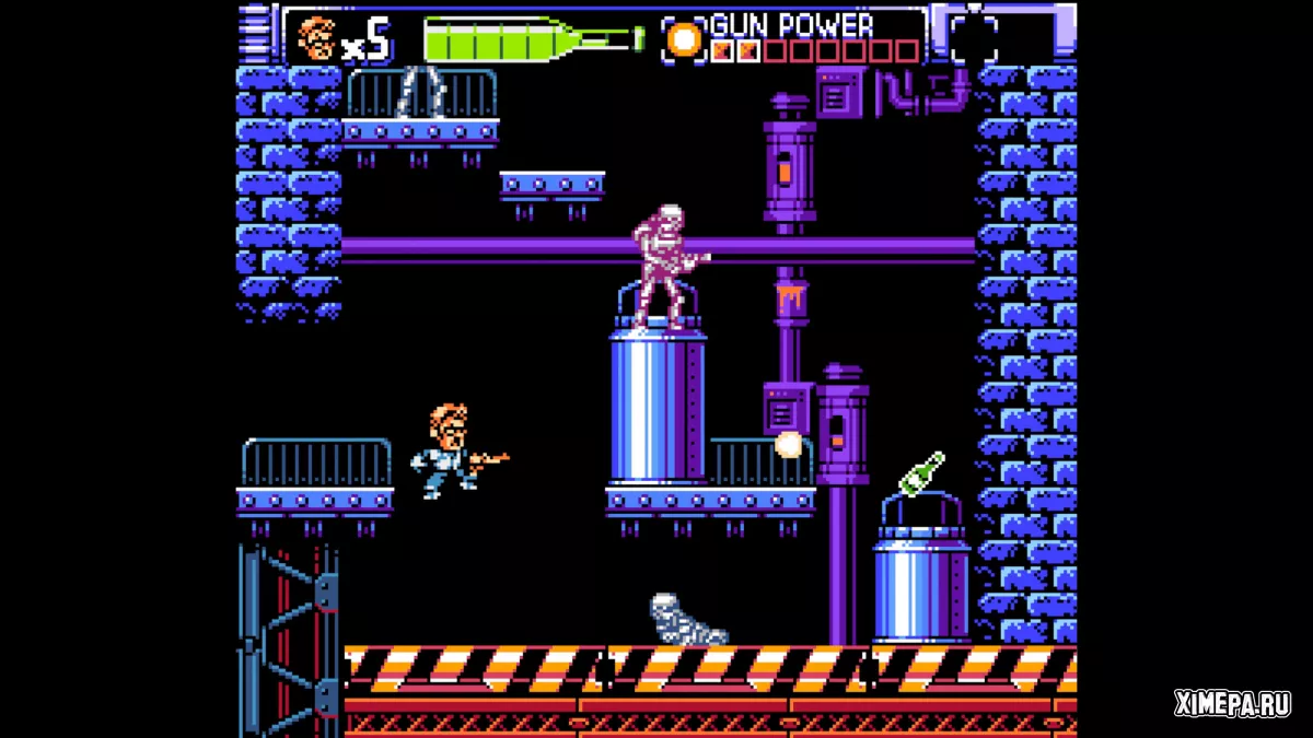 Графика соответствует стандартам NES, управление отзывчивое и относительно плавное для системы 1985 года, а звук и музыка добавляют колорита. В целом, «Angry Video Game Nerd 8-Bit» — это короткая, но забавная и качественная ретро-платформерная игра, особенно для поклонников AVGN и любителей олдскульных NES-приключений.