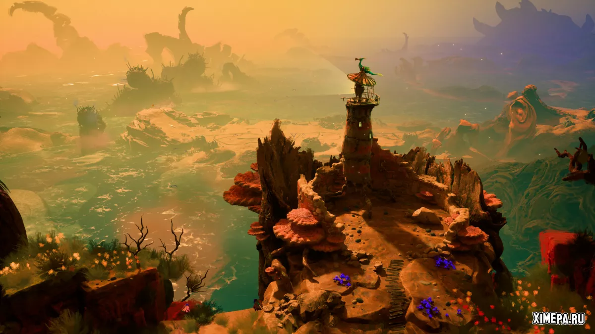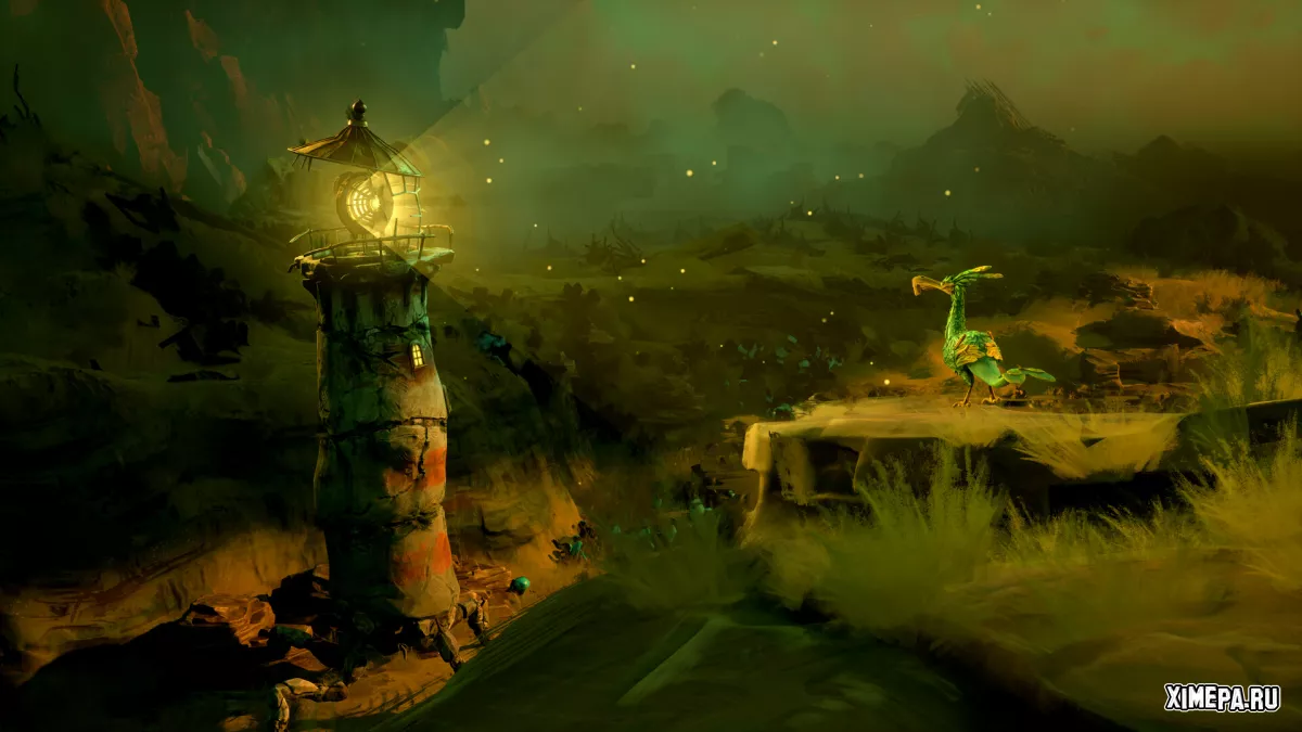 Игра Keeper от студии Double Fine — это необычное и визуально завораживающее приключение, которое сложно отнести к какому-либо конкретному жанру. С первых минут она ощущается как арт-проект: нет диалогов, сюжет подается через движение и визуальные образы, а главная цель — достичь далекой горы — лишь формальный ориентир. В игре вы управляете маяком, который оживает и учится ходить на тонких, шатких ногах. Сначала его движения неловкие, часто случаются падения, но с опытом маяк начинает уверенно двигаться по странному, живому миру, где каждое действие, будь то освещение объектов или отправка птицы к интерактивным элементам, имеет смысл.