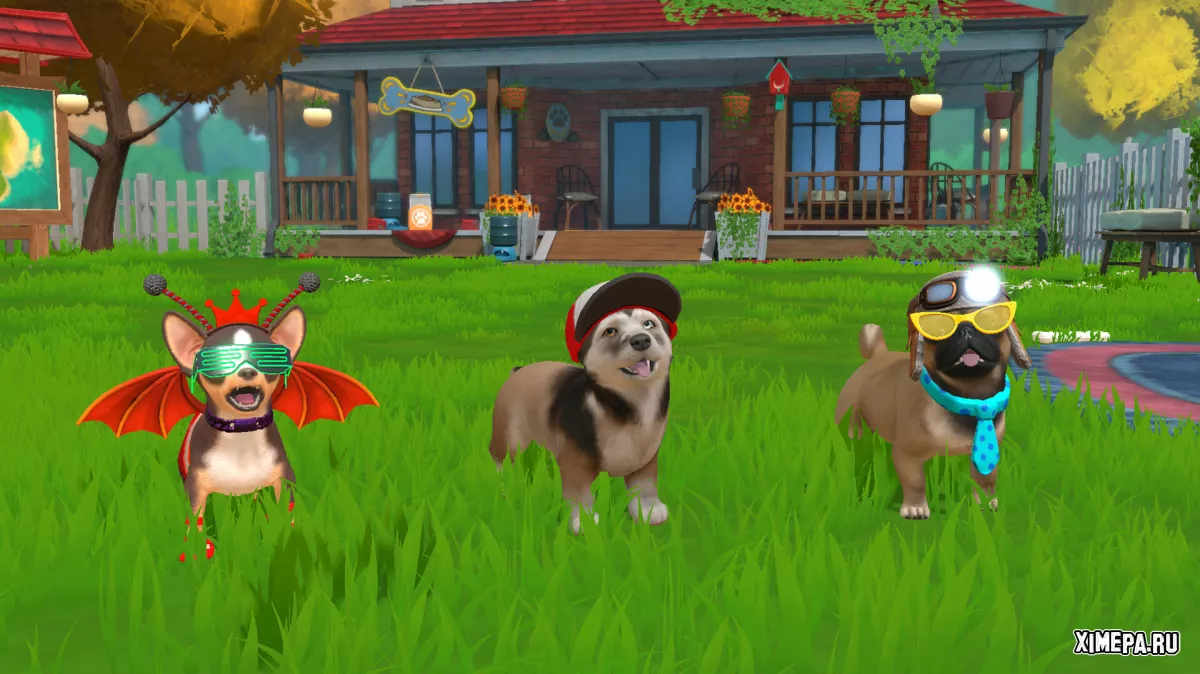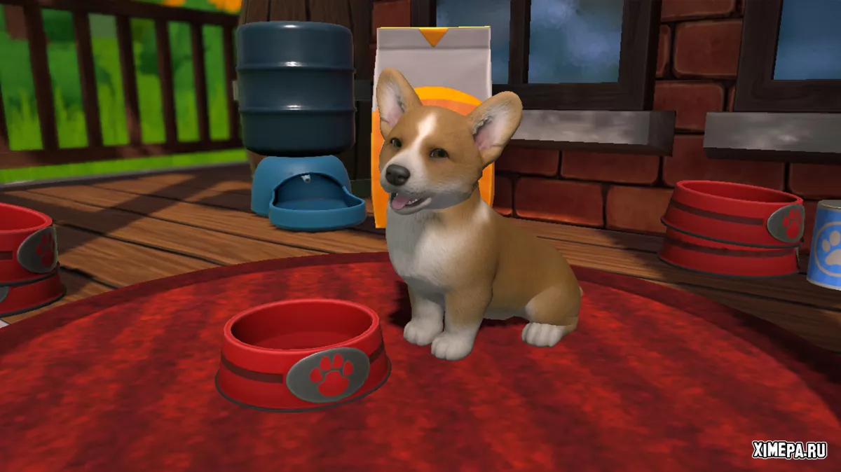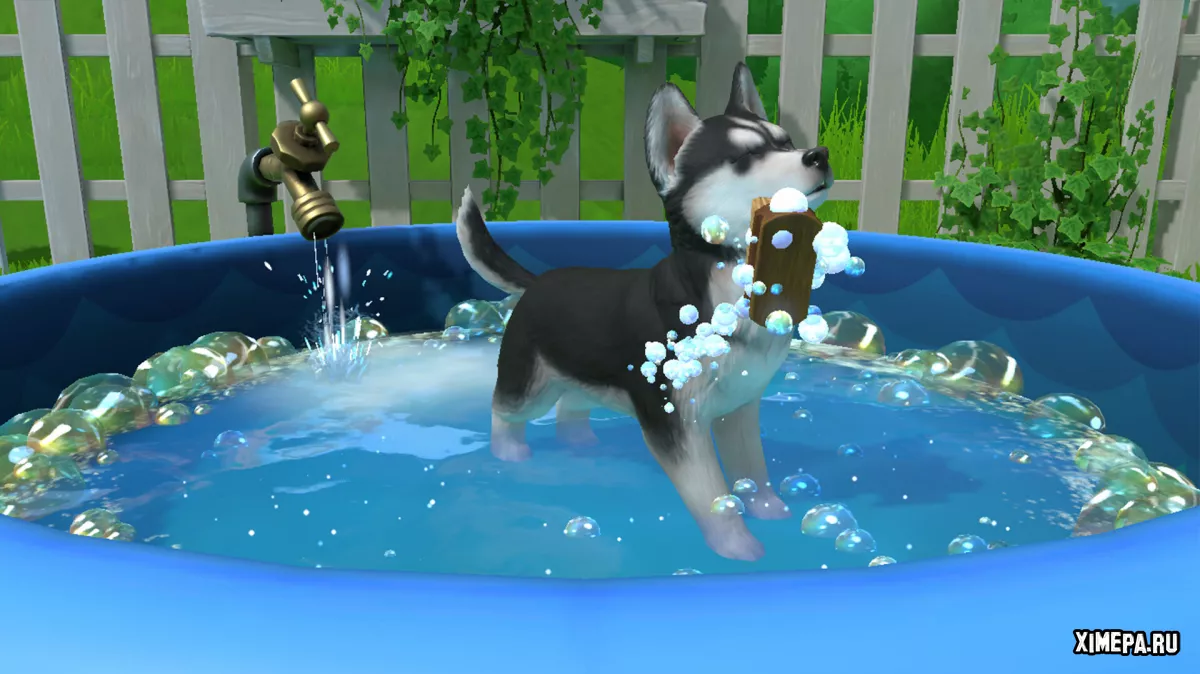 С этого момента и начинается основная механика: вы находите собак, ухаживаете за ними и постепенно развиваете остров. Щенки нуждаются в еде, прогулках, ласке и чистоте, а игроку предстоит следить за всеми этими показателями. Чтобы повысить привязанность, нужно гладить питомцев и хвалить их, энергию восполняет еда, а чистоту — купание в детском бассейне. Прогулки проходят в реальном времени, управляются клавишами WASD и позволяют находить кости — местную валюту, с помощью которой можно открывать новые предметы и локации.