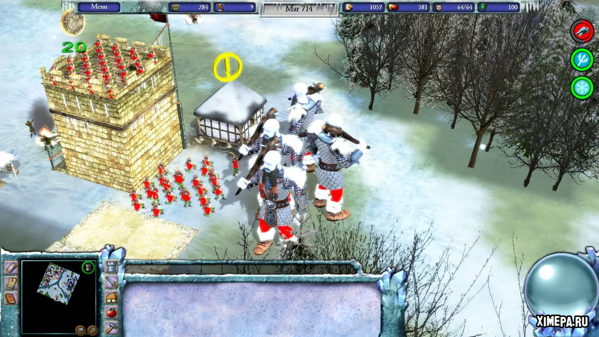 Ледяная фракция живет в вечной зиме, что накладывает ограничения на экономику – нельзя строить пшеничные фермы и пекарни. Однако вместо этого доступны уникальные юниты, такие как ледяные гиганты, полярные медведи и сама Ледяная королева, которая способна наносить мощный урон врагам.