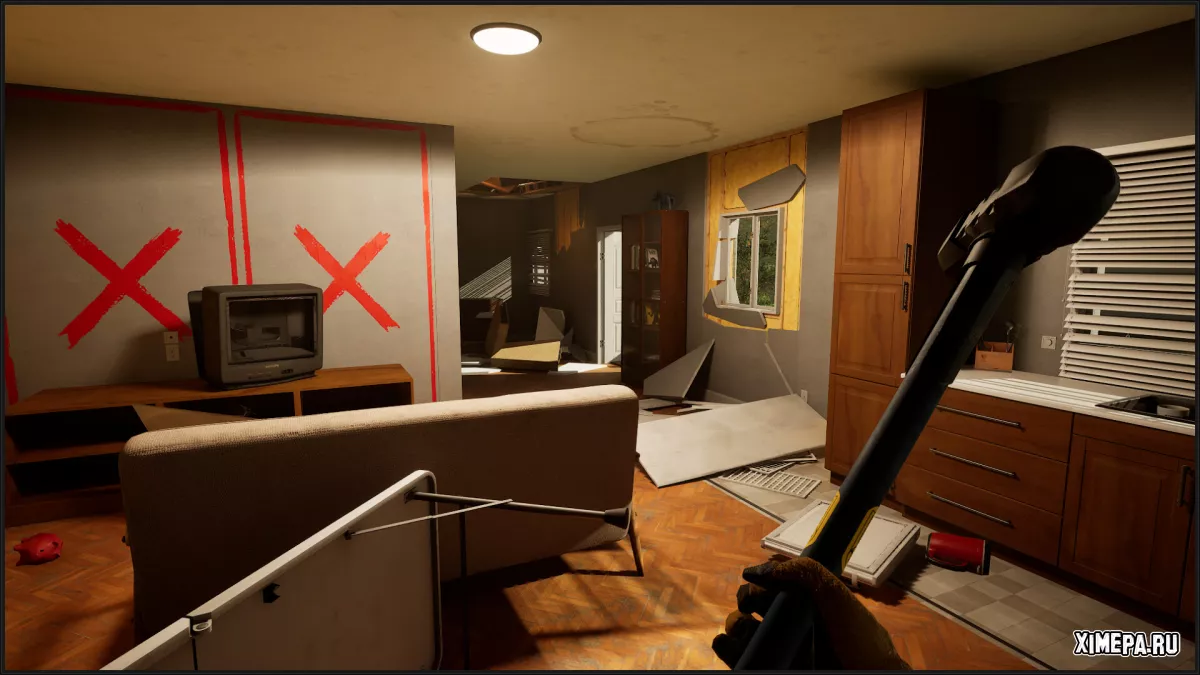 Основная механика — разборка и разрушение объектов. Хочешь унести раковину — придется аккуратно выкрутить болты, иначе продать ее не получится. Можно все просто разбить, но тогда заработка не будет. Разрушать приятно: физика обрушений доставляет удовольствие, хотя иногда элементы, вроде крыши второго этажа, зависают в воздухе без всякой логики.