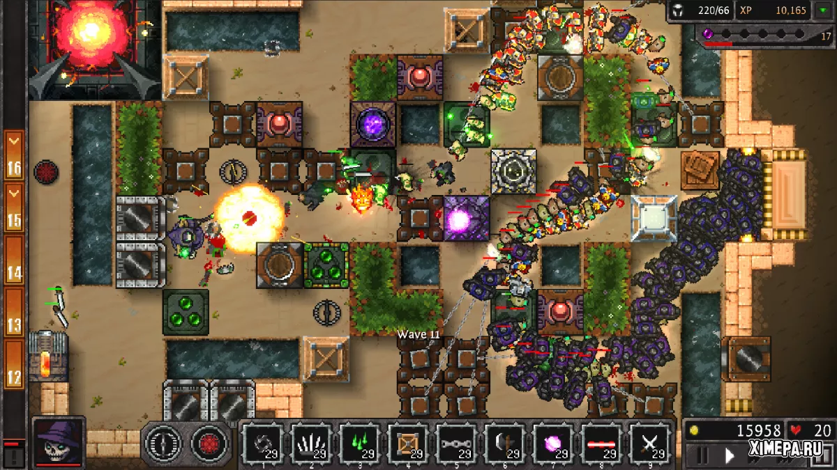 «Dungeon Warfare 3» — это не просто новая игра в жанре tower defense, а продолжение культовой серии, где игроку снова предстоит примерить на себя роль повелителя подземелий. Мир выполнен в стильной пиксельной графике, но за этим уютным обликом скрывается настоящая лаборатория боли и ловушек, где каждый проход можно превратить в смертельный лабиринт. Здесь вы не просто расставляете турели или шипы, а превращаете пространство в живую систему обороны, играя с рельефом, комбинируя эффекты и наказывая тех, кто посмел вторгнуться.