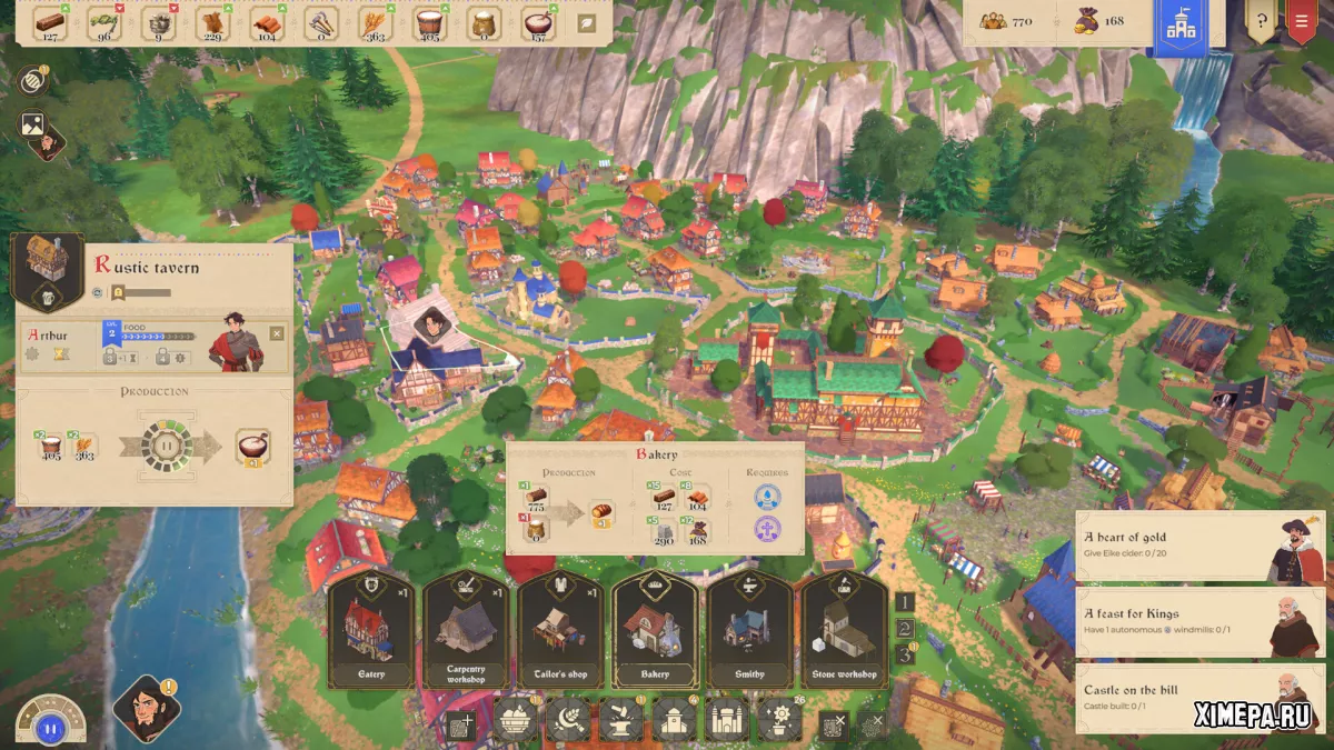 Интерфейс игры интуитивно понятен: ресурсы отображаются в верхней части экрана, есть подсказки и задачи, помогающие освоить базовые механики без перегрузки. Однако темп игры иногда замедляется, когда жители заняты производством материалов, и даже кнопка ускорения хода времени работает только до 2x, что может раздражать.