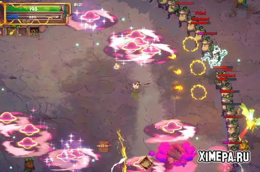 Но истинная цель выше простых побед. Разбросанные по миру фрагменты реликвий Клакфеона зовут к себе. Собрав их, ты получаешь шанс прикоснуться к силе древних куриных богов и обрушить на лягушачье воинство энергию, способную стереть их существование с лица земли.