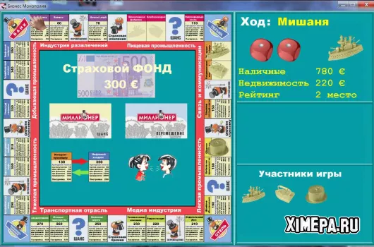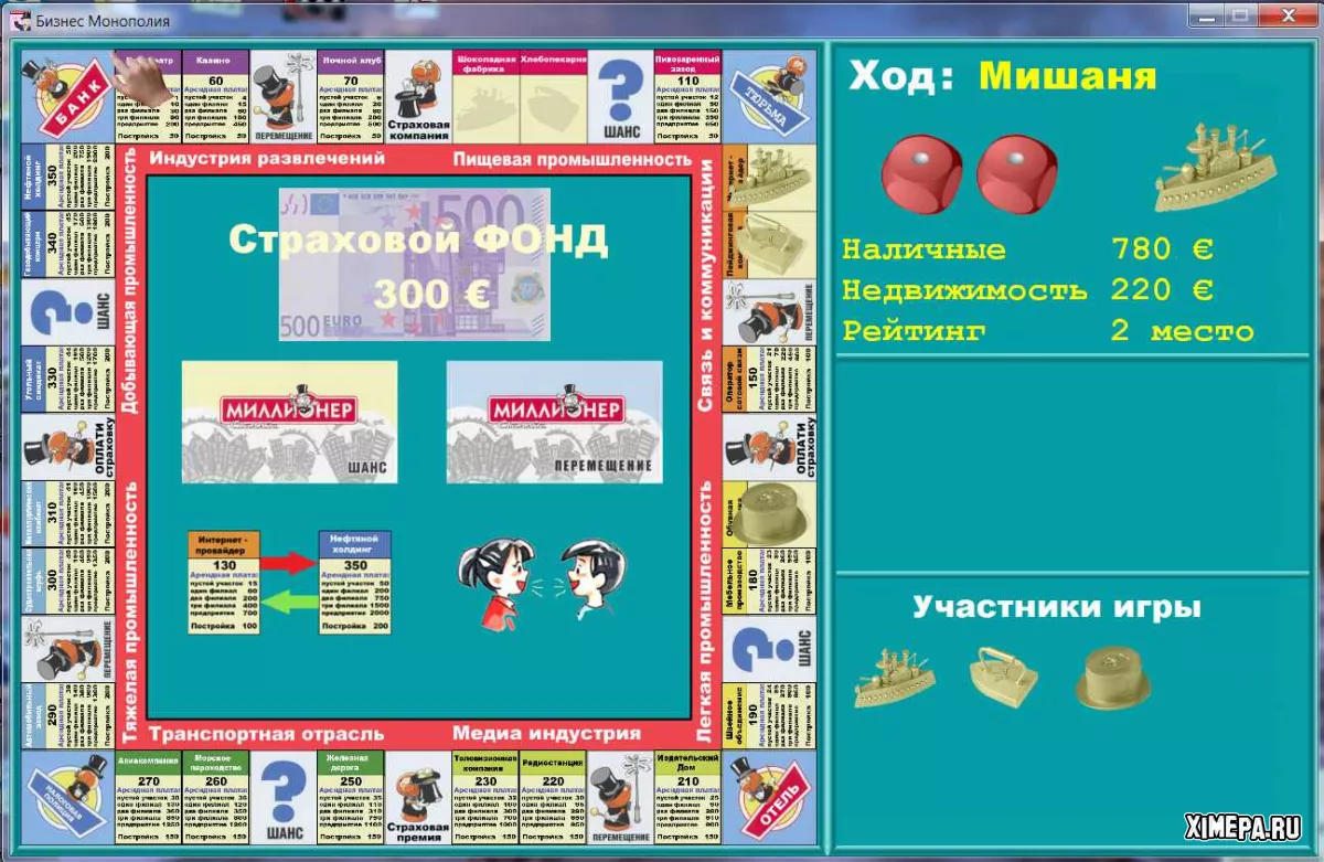 Третья игра - "Бизнес Монополия". Внешне похожа на Русскую Монополию. Но в отличии от все известных мне вариантов здесь БАНК не выдает игрокам деньги "просто так". От дает их в кредит, а за пользование кредитом - берет процент. И чем больше сумма кредита - тем выше процент. Поэтому можно разориться не только из-за удачных действий противника, но и из-за легкомысленного отношения к банковским кредитам.