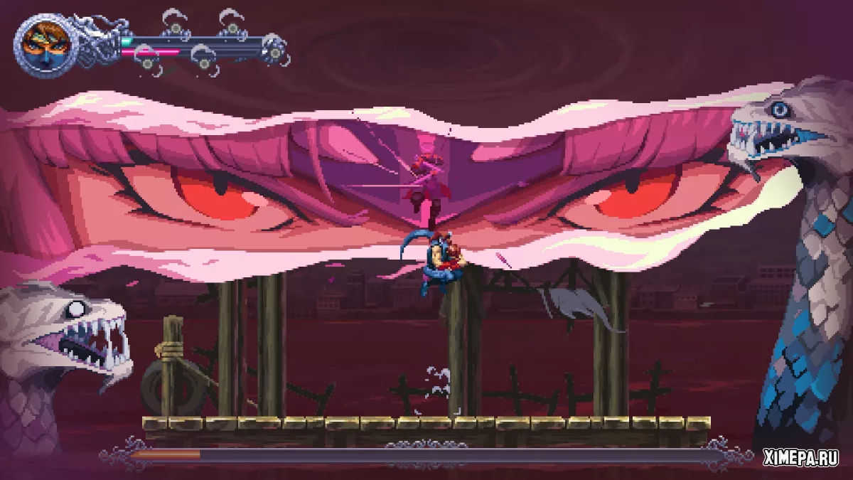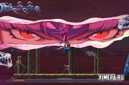 Игровой процесс представляет собой динамичный 2D-платформер с элементами метроидвании, где игроку предстоит сражаться с ордами врагов, преодолевать препятствия и использовать различные боевые техники. Почти всех противников можно уничтожить одним ударом, а плавные анимации боев и шикарное пиксель-арт оформление создают настоящее визуальное наслаждение. Особенно приятно наблюдать за тем, как герои наносят удары, как враги распадаются на части, а кровь заливает экран.