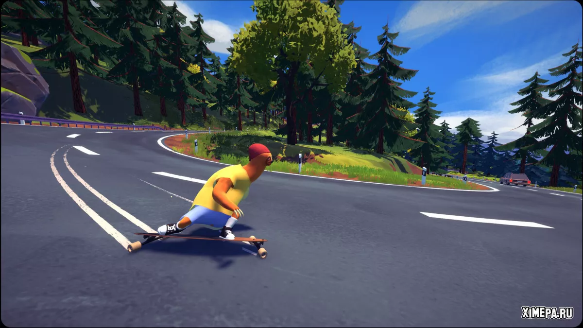 Геймплей предельно простой: вы разгоняетесь, наклоняетесь вперёд для ускорения или назад, чтобы замедлиться, и избегаете машин, деревьев и других препятствий. Управление интуитивное, но требует джойстика — на клавиатуре играть менее удобно. Один из элементов — дрифт — реализован спорно: он управляется бамперами (поворотами), но часто приводит к нежелательным разворотам на 180 градусов, что мешает сохранять ритм катания. Несмотря на название, дрифтинг скорее сбивает с толку, чем добавляет удовольствия.