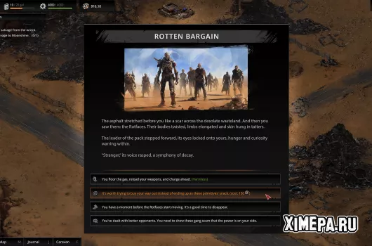 Мир игры напоминает Mad Max — это опустошённые земли, заброшенные постройки и редкие анклавы, выступающие в роли торговых узлов, ремонтных станций и источников заданий. Исследование карты происходит в реальном времени, и всё, от топлива до воды, требует постоянного контроля. Закончился бензин — потеряешь всё нажитое и откатишься к последнему посещённому анклаву.