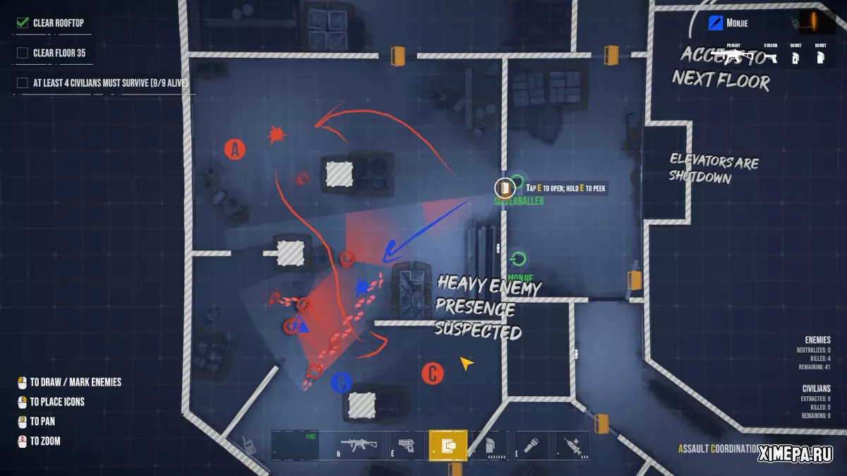 Особое внимание заслуживает система тактического планирования A.C.E. — настоящий мозговой центр каждой операции. С её помощью можно прокладывать маршруты, отмечать врагов, координировать действия команды и тщательно расписывать каждый шаг наступления. Это делает игру похожей на подготовку спецоперации: не просто зайти и зачистить, а провести выверенную и сложную атаку, где важна каждая секунда. И если всё идёт по плану — ощущение триумфа просто невероятное.