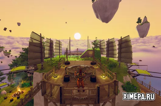 С помощью вингсьюта игрок исследует мир, собирает ресурсы и постепенно превращает выбранный остров в полноценный летучий корабль. Это — одна из самых ярких и увлекательных особенностей игры, особенно в кооперативе. Каждый игрок может пригласить друзей и привезти в общий мир свои острова и персонажей. Вместе можно заниматься садоводством, разводить животных и обустраивать воздушные жилища — всё это подано в расслабленном и добродушном тоне, без давления и строгих ограничений.