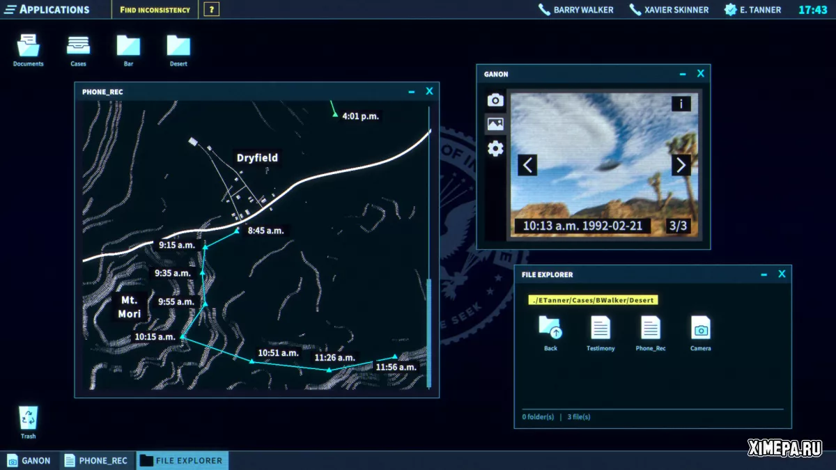 В течение четырёх игровых дней ты расследуешь разные дела: убийство в баре, предполагаемое похищение пришельцами, подозрительный пожар, и даже загадочную могилу в пустыне. Игра втягивает в себя через продуманный саунд-дизайн, где звуки офиса, сменяющиеся музыкой при приближении к разгадке, создают настоящее ощущение прогресса и участия. Позже в дело вмешивается загадочный хакер HAL, и стандартное расследование переходит в напряжённую историю с заговорами и взломом системы.