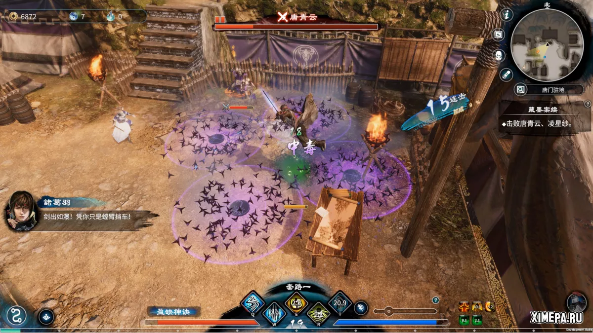 Боевая система реализована красиво, пусть и используется редко. Чжугэ Юй может переключаться между четырьмя видами оружия и стилей боевых искусств, комбинируя приёмы и вызывая эффектные анимации. Всё это дополняется возможностью временно оглушить врагов и на этом фоне нанести мощные удары. Врагов в игре немного и они не возрождаются, так что бои служат больше как приятное разнообразие в череде расследований.