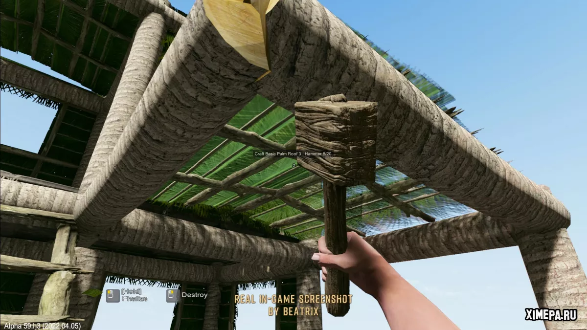 На момент описания доступен только режим песочницы, где даже механики выживания толком не работают — персонаж может обходиться без воды и еды в течение нескольких игровых дней без последствий. Игровой процесс напоминает стандартные шаги в других survival-играх: ищешь камни и дерево, делаешь топор, нож и молоток, затем строишь простейшие конструкции и инструменты. Врагов нет, опасностей нет — чистое созидание. Физика в игре местами весёлая, но не всегда адекватная: предметы могут взмывать в воздух, рафт скачет по воде как в аркаде, а с рампами и вовсе беда — по ним нельзя ходить, только прыгать с застреванием.