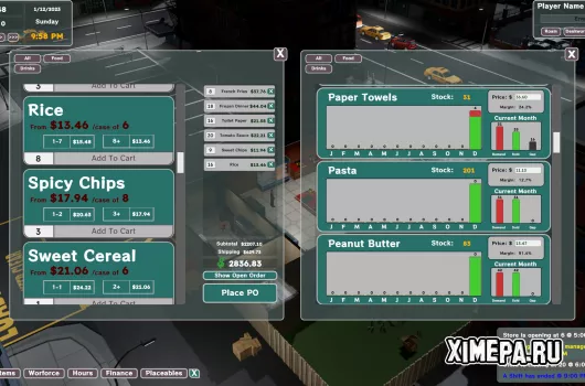 Здесь вы не просто владелец магазина — вы его сердце, мозг и иногда даже руки. Камера свободно скользит между видом от первого лица и панорамой сверху, позволяя вам быть везде одновременно: за кассой, на складе, в зале.