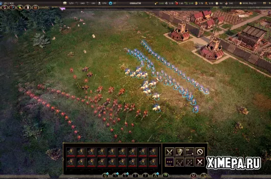 Со временем появляются военные элементы: можно строить стены, нанимать солдат, создавать осадные машины. Бои проходят в полуавтоматическом режиме и позволяют обороняться или атаковать другие поселения. Однако до военной фазы нужно добраться — в среднем на это уходит 9–10 часов.