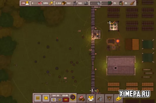 По мере улучшения построек открываются новые профессии — фермерство, шахтёрское дело, кузнечное ремесло. Каждое улучшение требует всё больше ресурсов, поэтому приходится расширять производство, строить склады и привлекать новых выживших. Однако самой серьёзной угрозой остаются зомби, которые каждую ночь атакуют лагерь. Иногда они начинают ломать стены, и тогда приходится отправлять бойцов с ножами или снайперов для защиты. За убийства зомби игрок получает очки умений, которые улучшают характеристики, такие как скорость, урон или уровень шума. Но если враг прорвёт оборону — игра заканчивается.