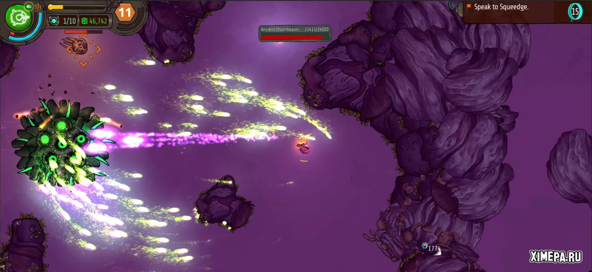 Основной геймплей состоит из схожих по структуре заданий: прилетай в сектор, пробивайся через врагов, уничтожай босса, забирай трофей, возвращайся за наградой. Такой подход хорошо работает для жанра, ведь дает повод для активных сражений, но сами столкновения быстро становятся однообразными. Враги ощущаются безликими, их поведение и внешний вид слабо различаются, а карты, сгенерированные процедурно, часто слишком тесны, из-за чего эффективной стратегией становится заманивание врагов в узкие проходы для расстрела с безопасного расстояния.