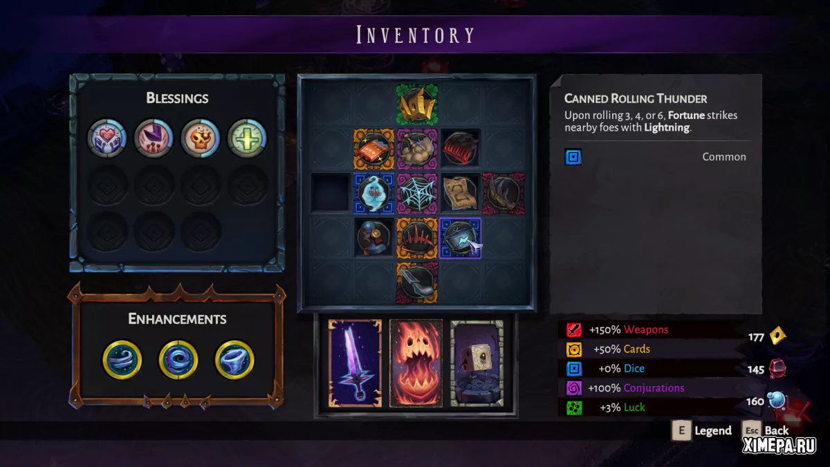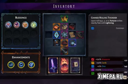 И всё же, несмотря на слабый сюжетный посыл, The Eternal Die завлекает динамичным, насыщенным и вариативным боем. Битвы ощущаются живыми и увлекательными: можно применять магические реликвии, экспериментировать с оружием, прокачивать способности и даже бросать своего спутника-кубик, чтобы изменить ход сражения. Геймплей построен по классическим канонам жанра roguelike: процедурно генерируемые уровни, усиления после каждой неудачи, случайные события и торговцы, встречи с боссами и вознаграждение за настойчивость.