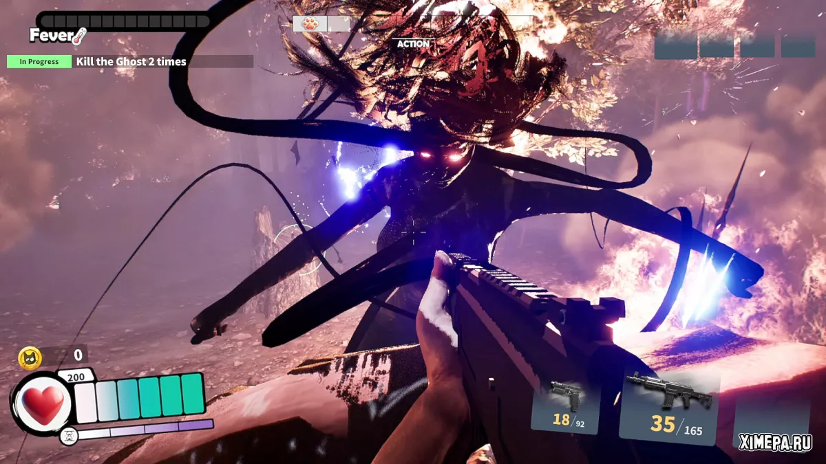 Оружие — отдельная глава: оно генерируется случайным образом и может быть самым необычным, что помогает избежать повторяющихся сценариев и поддерживает ощущение сюрприза. Вместо кровавых сцен здесь визуальные эффекты вроде фейерверков и лепестков, чтобы игра оставалась яркой и подходящей для более широкой аудитории, несмотря на жанр FPS.