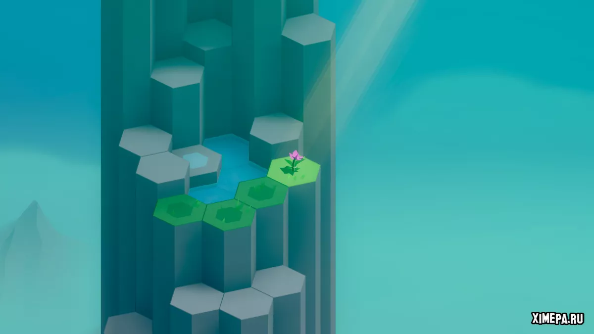 Игровой процесс строится вокруг выращивания цветов из семян, используя воду и плодородную почву. Чтобы добиться этого, ты понижаешь высоту плиток, направляя поток воды и создавая условия для роста. Всё интуитивно понятно: одна плитка освещена солнцем — это семя, другая содержит воду. Твоя задача — соединить их, создав путь, по которому влага сможет достичь семени, проходя через зелёные участки. Со временем появляются новые сложности: вода может вытекать за край уровня, приходится управлять несколькими семенами, распределяя ресурсы с умом. Но даже эти задачи не напрягают — они, скорее, добавляют чуть больше глубины к созерцательному процессу.