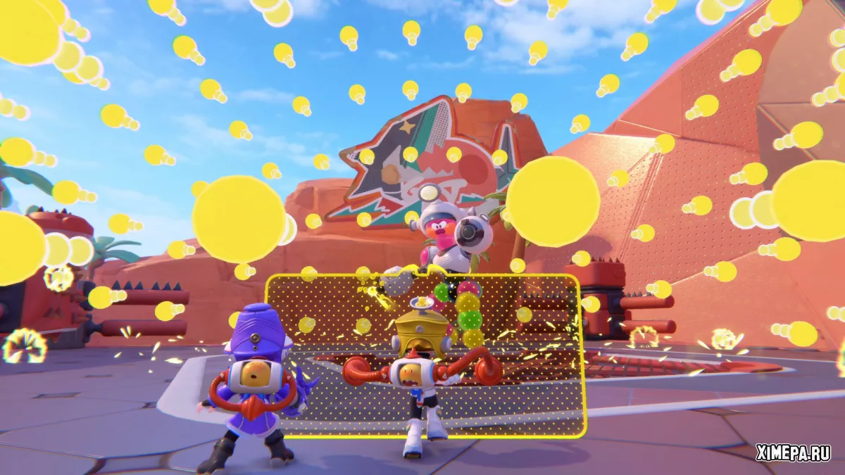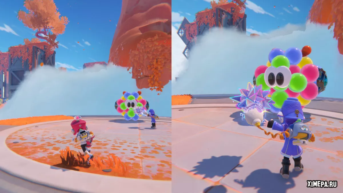 POPUCOM — это яркая, насыщенная красками кооперативная игра, которая удачно сочетает механику «три-в-ряд» с 3D-платформингом и элементами головоломки. Проект от Hypergryph целиком и полностью построен на совместном прохождении — здесь просто нет одиночного режима. Играть можно вдвоём в сюжетной кампании или втроём-четвером в режиме вечеринки. Как и в It Takes Two, всё в POPUCOM зиждется на взаимодействии: от слаженных прыжков и решения платформенных головоломок до координированных атак на врагов с помощью стреляющих пузырей.