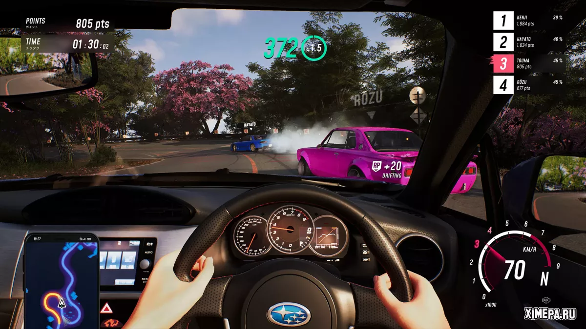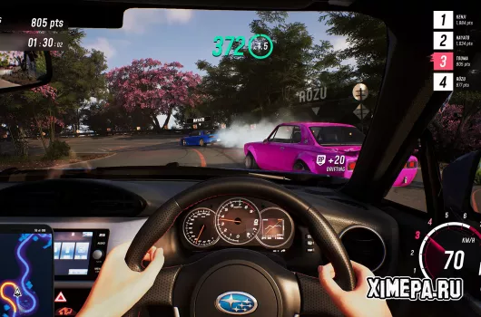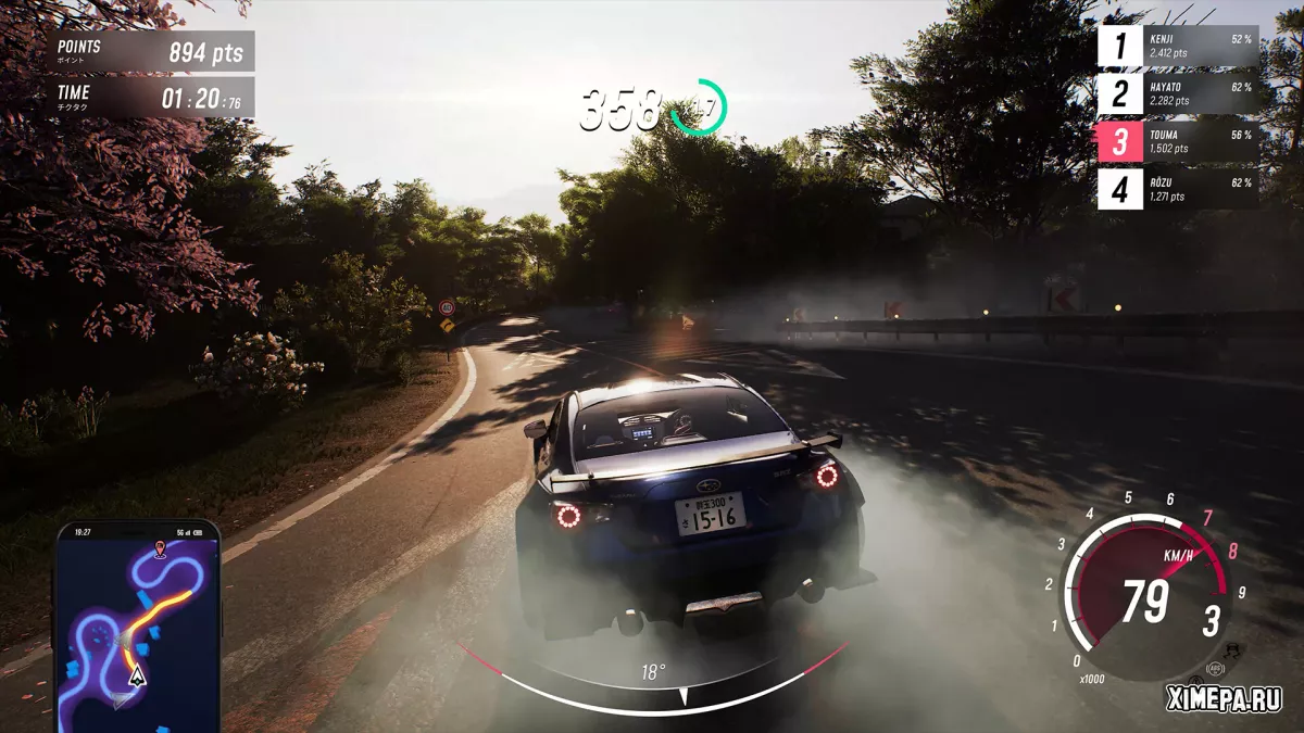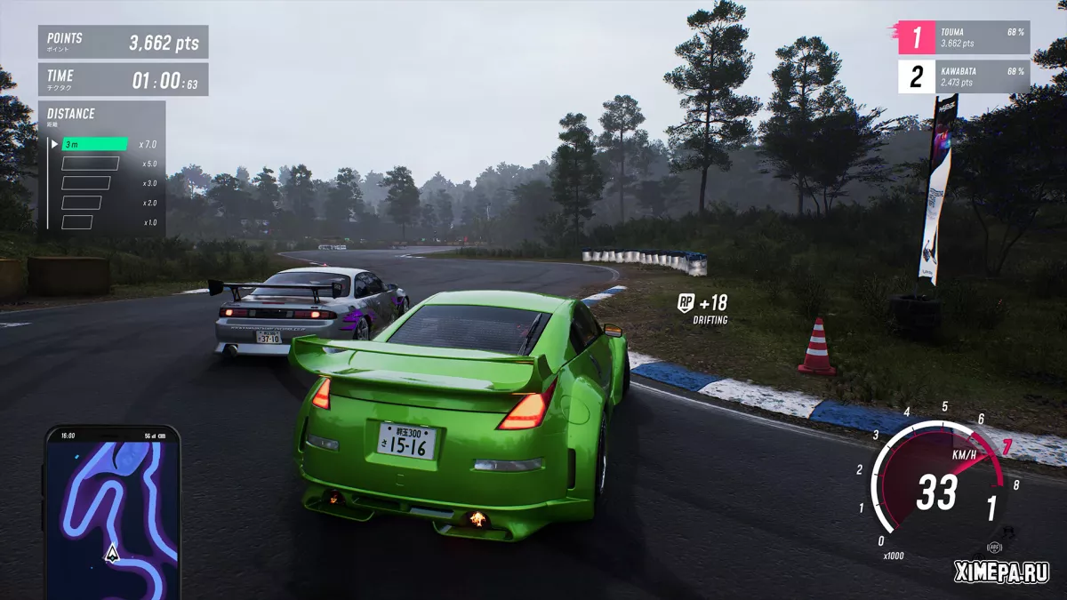 Игровой процесс предлагает богатый набор активностей: от классических гонок и соревнований по дрифту до доставки суши, угона от полиции и преследований. Особенно приятно, что игра учит дрифту через отдельную школу, где можно освоить технику управляемого заноса. Всё это разбавляется разными режимами: драг-рейсингом, скоростными заездами, прохождением радаров, но всё же между заданиями мир ощущается пустым и однообразным.