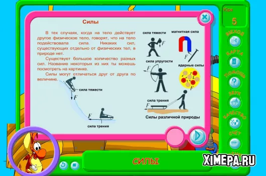 На каждом шагу вас сопровождает обаятельный и добродушный гид — Дракоша. Вместе с ним вы познакомитесь с такими фундаментальными понятиями, как скорость света, масса тела, ускорение свободного падения и многими другими физическими явлениями. Дракоша не просто рассказывает о сложных концепциях — он помогает увидеть их проявление в окружающем мире.