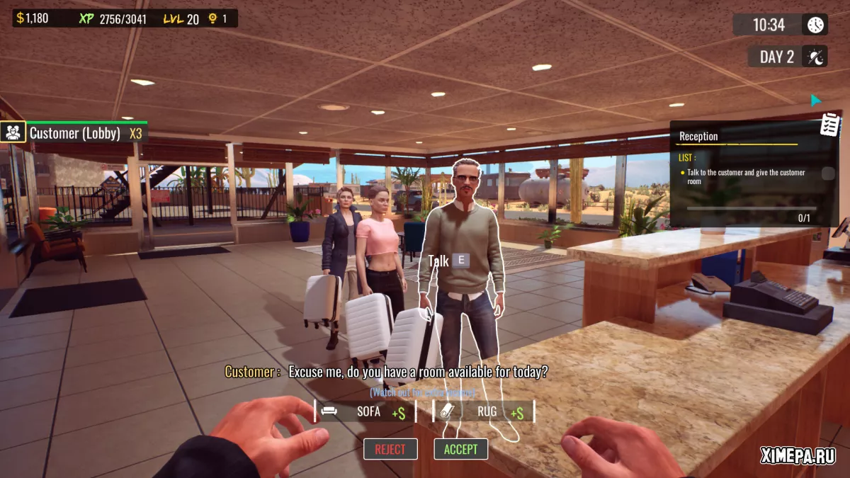 Главное удовольствие — наблюдать, как ваш бизнес развивается: от простого выполнения поручений до эффективного управления с минимальными усилиями. Единственное, что может немного раздражать — это починка и уборка предметов в номерах. Иногда бывает трудно заметить, что именно нужно чинить, особенно если это, например, ковёр, затенённый мебелью.