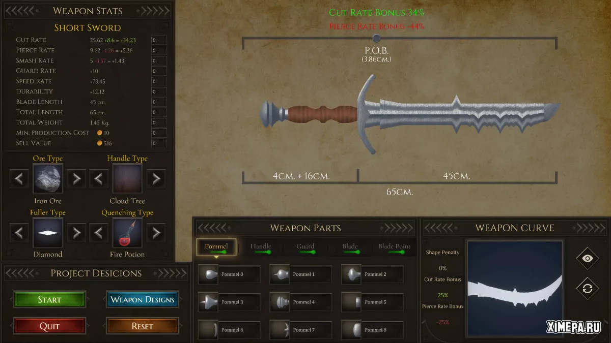 В игре огромное внимание уделяется деталям. Материалы, из которых вы создаёте оружие — от руды до дерева — влияют на боевые свойства: режущую способность, вес, проникающую силу. Нужно точно соблюдать пропорции сплавов, правильно собирать все элементы и доказывать своё мастерство. Кроме того, важен даже центр тяжести — он определяет, насколько удобно и эффективно оружие будет в бою.
