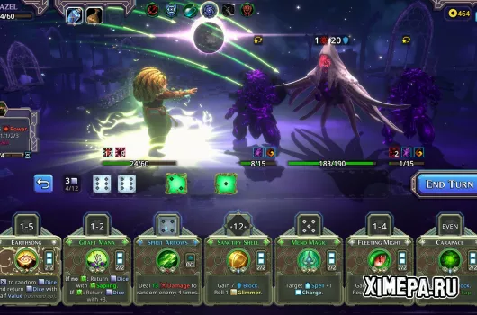 Три доступных персонажа — Лапис, Хейзел и Азар — предлагают совершенно разные стили игры. Лапис хорош в ядовитых стратегиях и постепенном нанесении урона, Хейзел делает ставку на мощные прямые атаки, а Азар предпочитает многочисленные мелкие удары. У каждого героя есть несколько стартовых наборов, что позволяет ещё сильнее варьировать тактики. Сборка успешной стратегии полностью зависит от находок в процессе забега: иногда получается создать эффективный билд, иногда всё рушится буквально в шаге от финальной битвы с боссом Арканаксом.